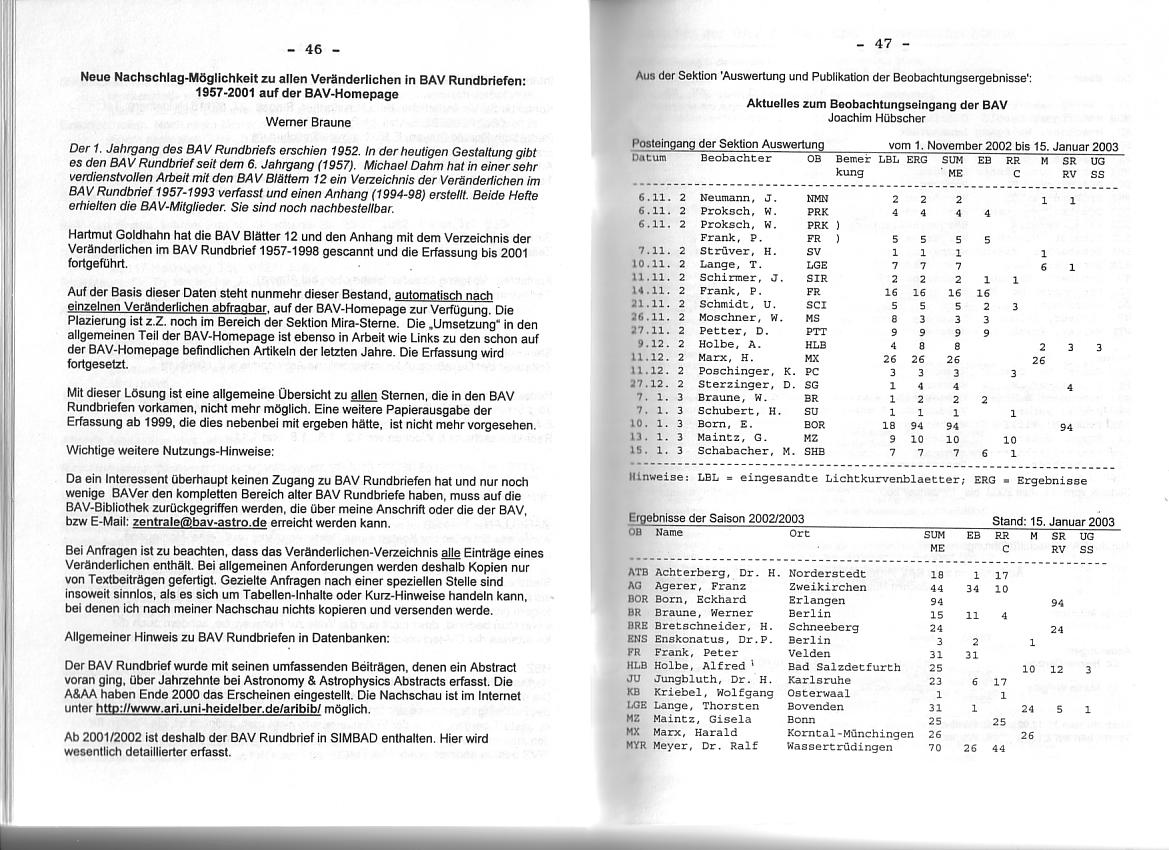 BAV Rundbrief 1/2003 Seite 46-47