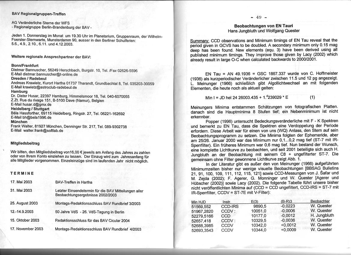 BAV Rundbrief 2/2003 Seite 49