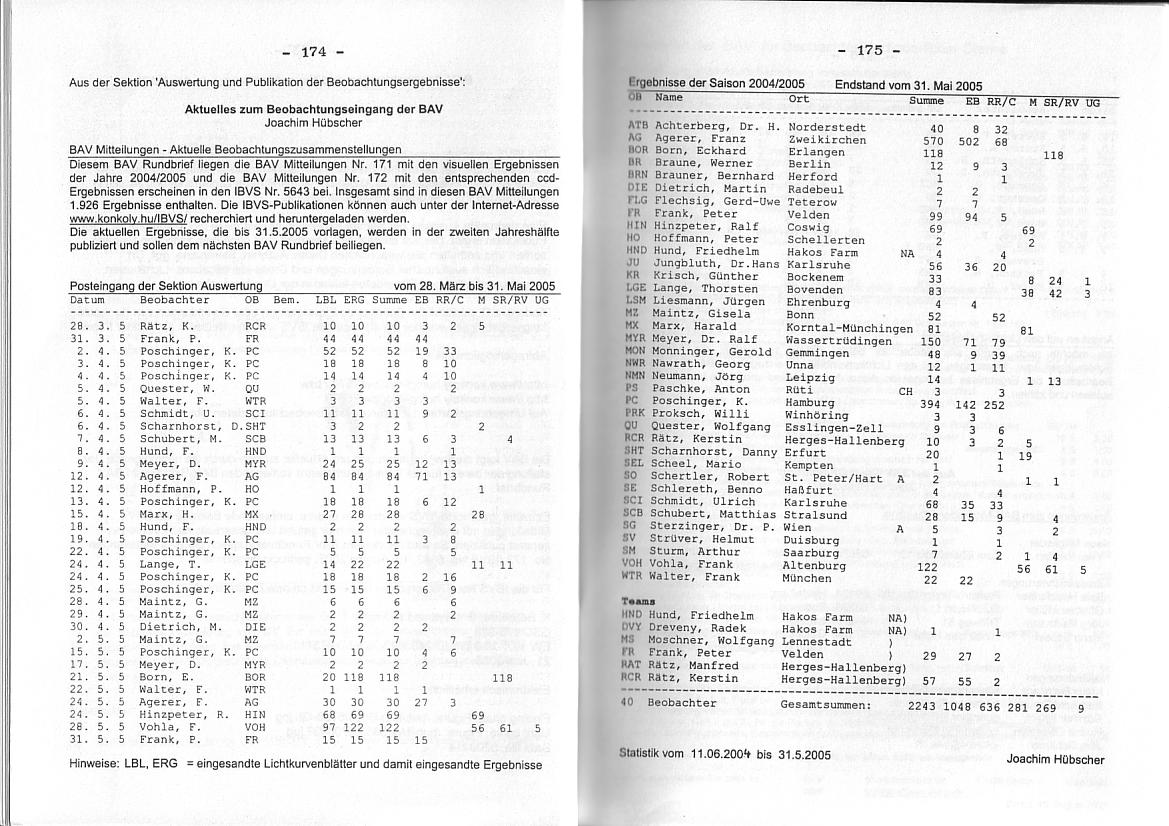 BAV Rundbrief 3/2005 Seite 174-175