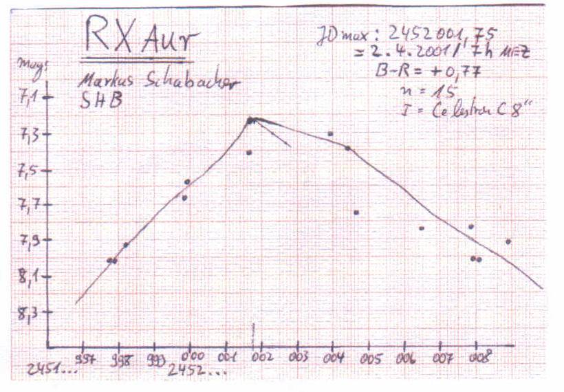 Abb. 3: Lichtkurve des Delta-Cep-Sterns RX Aur, Markus Schabacher
