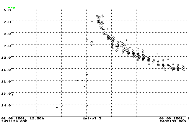 Abb. 6: Lichtkurve der Nova 2001 # 2 Cyg = V 2275 Cygni, Zusammenstellung Thorsten Lange