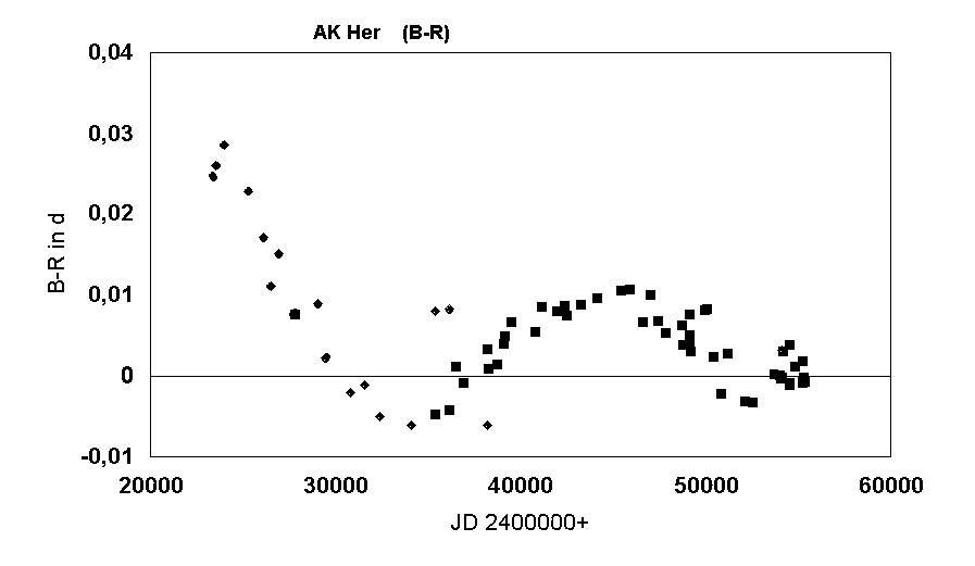 In seinem Artikel über SS Lac im RB 1/2001 weist Heinz Schmidt auf Sternpaare mit Apsidendrehung hin, die in Hoffmeister, Richter und Wenzel: "Veränderliche Sterne" ab Seite 208 erwähnt werden. Dazu ist anzumerken, dass die Liste auf Seite 210 dieses Werkes mit Vorsicht zu genießen ist und einer Überarbeitung bedarf. Mindestens von dem dort aufgeführten AK Her weiß ich durch eine Mitteilung von M. Dahm, dass dieses Sternsystem keine Apsidendrehung hat. Neuere spektroskopische Messungen haben ergeben, dass die Umlaufbahn nahezu kreisförmig ist. Auch das von M. Dahm mitgeteilte B-R Diagramm deutet eher auf einen unregelmäßigen Massenaustausch hin.