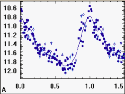 | MAX = JDH 2447981.423 + 0.4699846 [d] x E | (2) |
