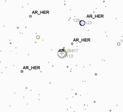 Die Position von AR Her ist: RA= 16h00m32.2s; DE= +46°55'26" (J2000). Zur Photometrie konnte auf die LONEOS Standards zurückgegriffen werden [7].