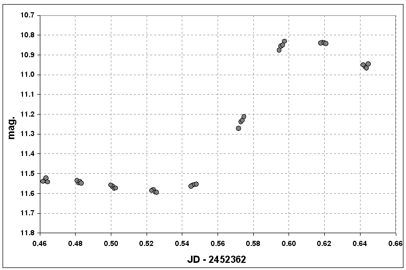 | MAX = JDH 2424794.274 + 0.4700234 [d] x E | (3) |