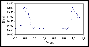 Die Form der Lichtkurve ist veränderlich. Für den Zeitraum JD 37000 - 40000 ergibt sich ein flacher Abstieg und ein steiler Anstieg, M - m = 0,P3. Für den Zeitraum JD 44000 - 49500 sind Abstieg und Anstieg gleich, M - m = 0,P5.